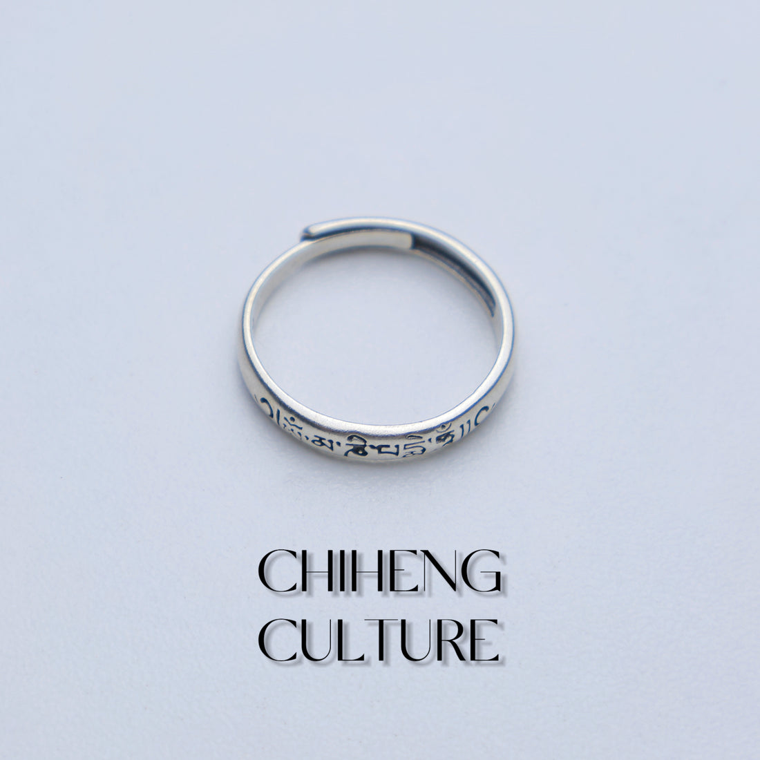 Retro Handmade Pure Silver Six - Syllable Mantra Ring: A Blend of Tradition and Subtle...