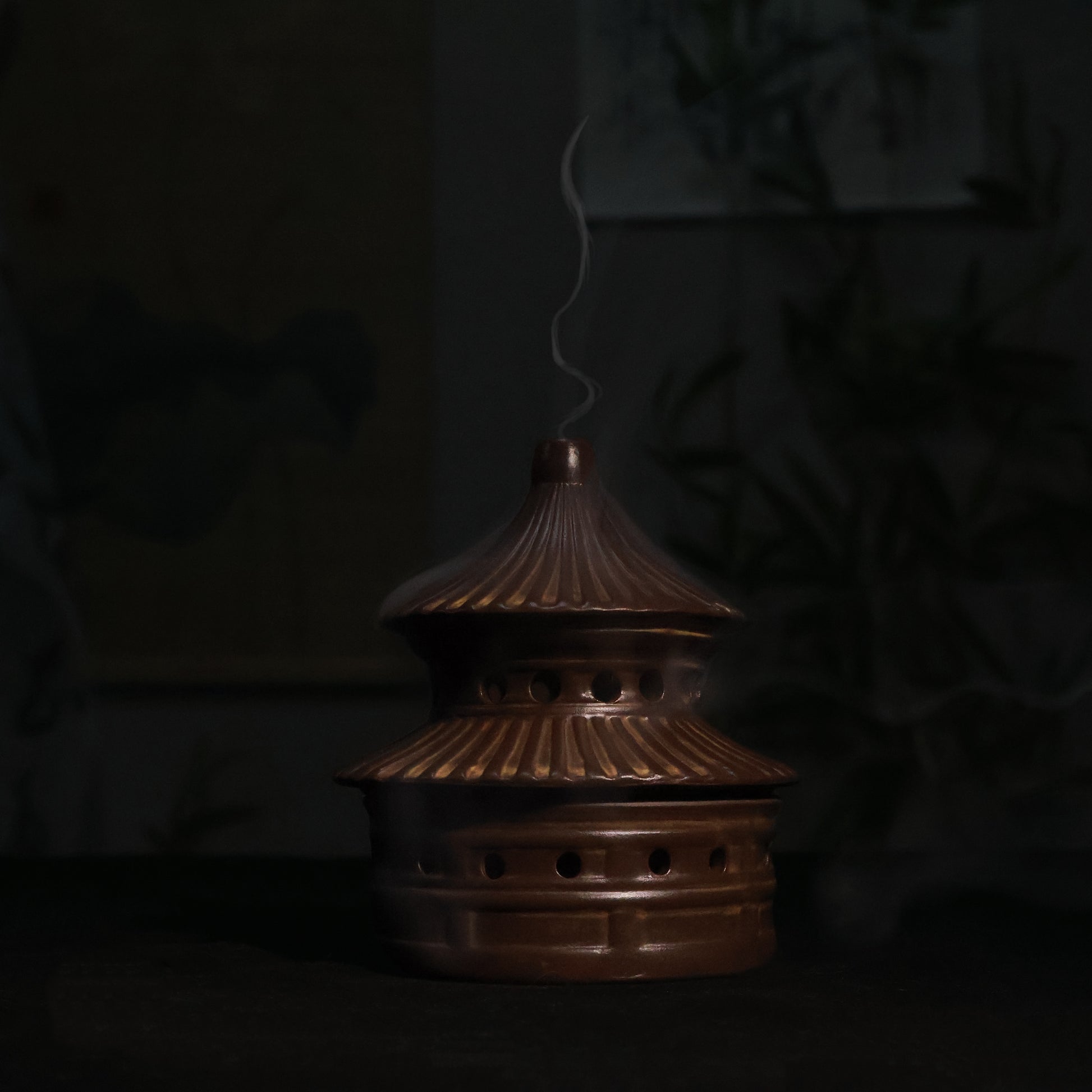 Shaped with smooth, flowing lines reminiscent of traditional Chinese architecture (echoing the harmony between human creations and nature in Taoist thought), the burner embodies the Taoist principle of “wu wei” — effortless action. It's not about forced control but about allowing things to unfold naturally, much like how fragrant smoke gently drifts through the air when incense is lit. There's no superstitious imagery here; instead, the design reflects a philosophical yearning for balance and tranquility in everyday life.