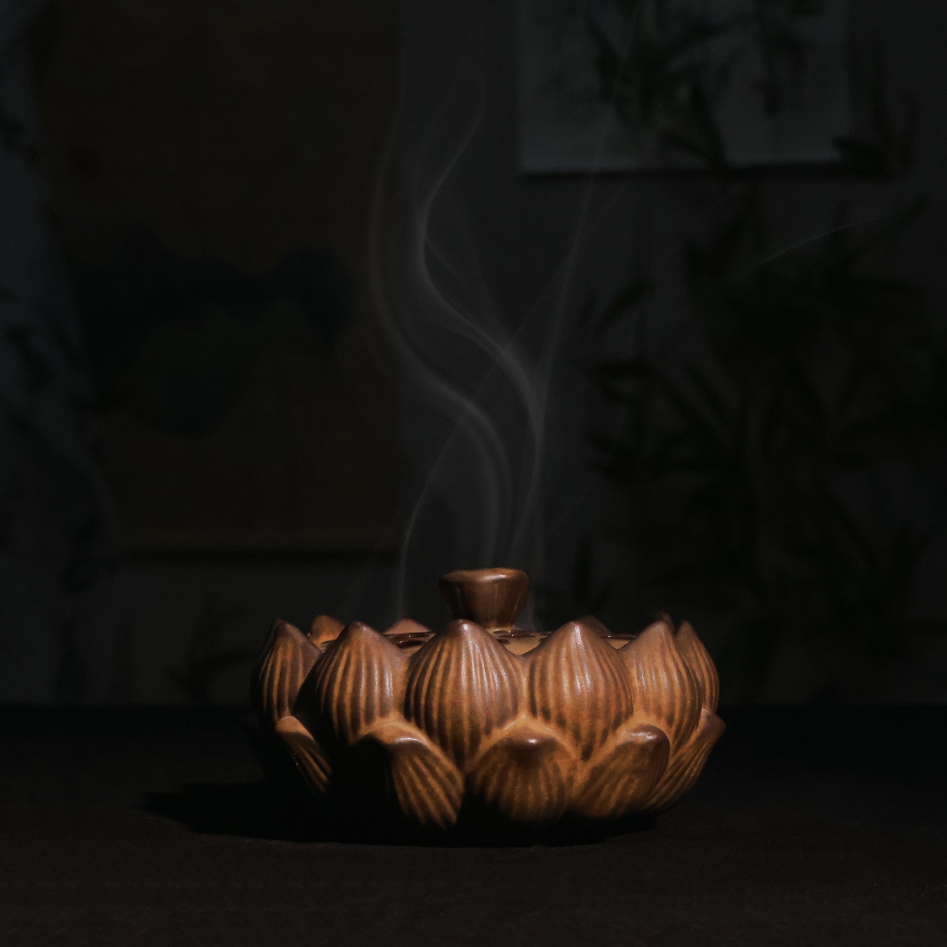 The burner’s shape, with its smooth, organic curves, evokes the idea of effortless action, a core Taoist principle. It’s not about forcing or controlling, but about allowing things to unfold naturally — much like how sandalwood smoke gently drifts through the air. There’s no superstitious imagery here; instead, the design reflects a philosophical yearning for balance and tranquility in daily life.